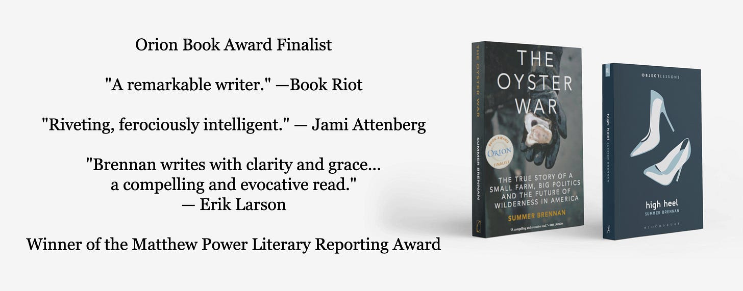 Enjoy my writing and want to support it? Become a paid subscriber today. You’ll get full access to craft talks, essays, notebook entries, sketchbook pages, and the popular semiannual write-along workshop Essay Camp. You can also buy my books The Oyster War and High Heel, “like” my posts by tapping the heart icon, share them on Substack Notes or other social media, and/or send them to a friend.